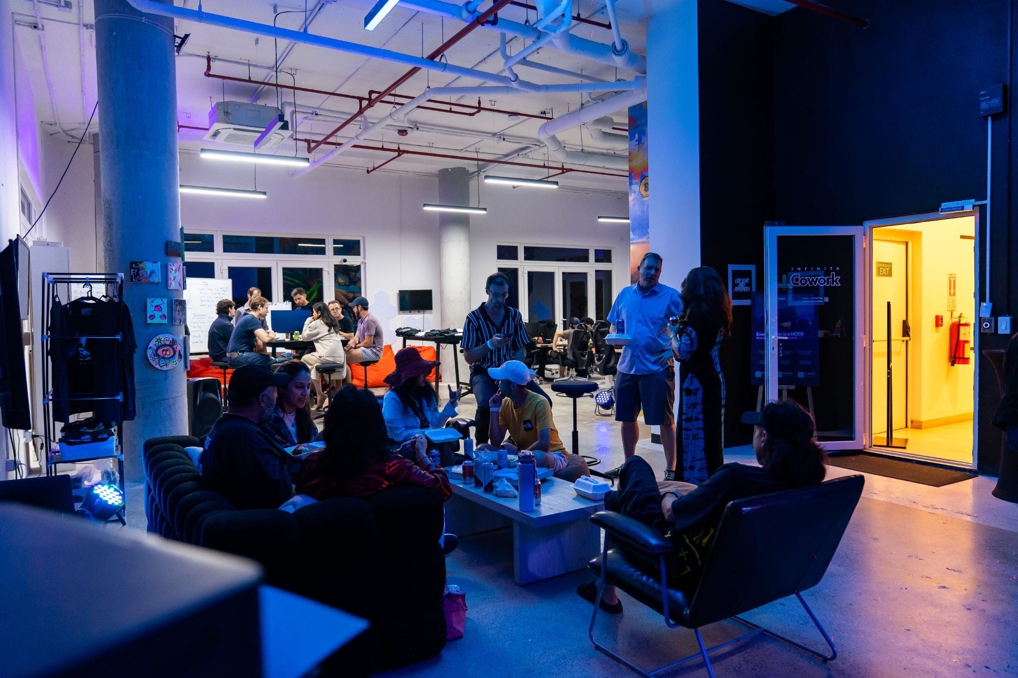 It’s not a standard venue. The space sits somewhere between cyberpunk and formal, with flexible seating, dynamic lighting, and a layout that adapts to talks, workshops, dinners, or recordings.