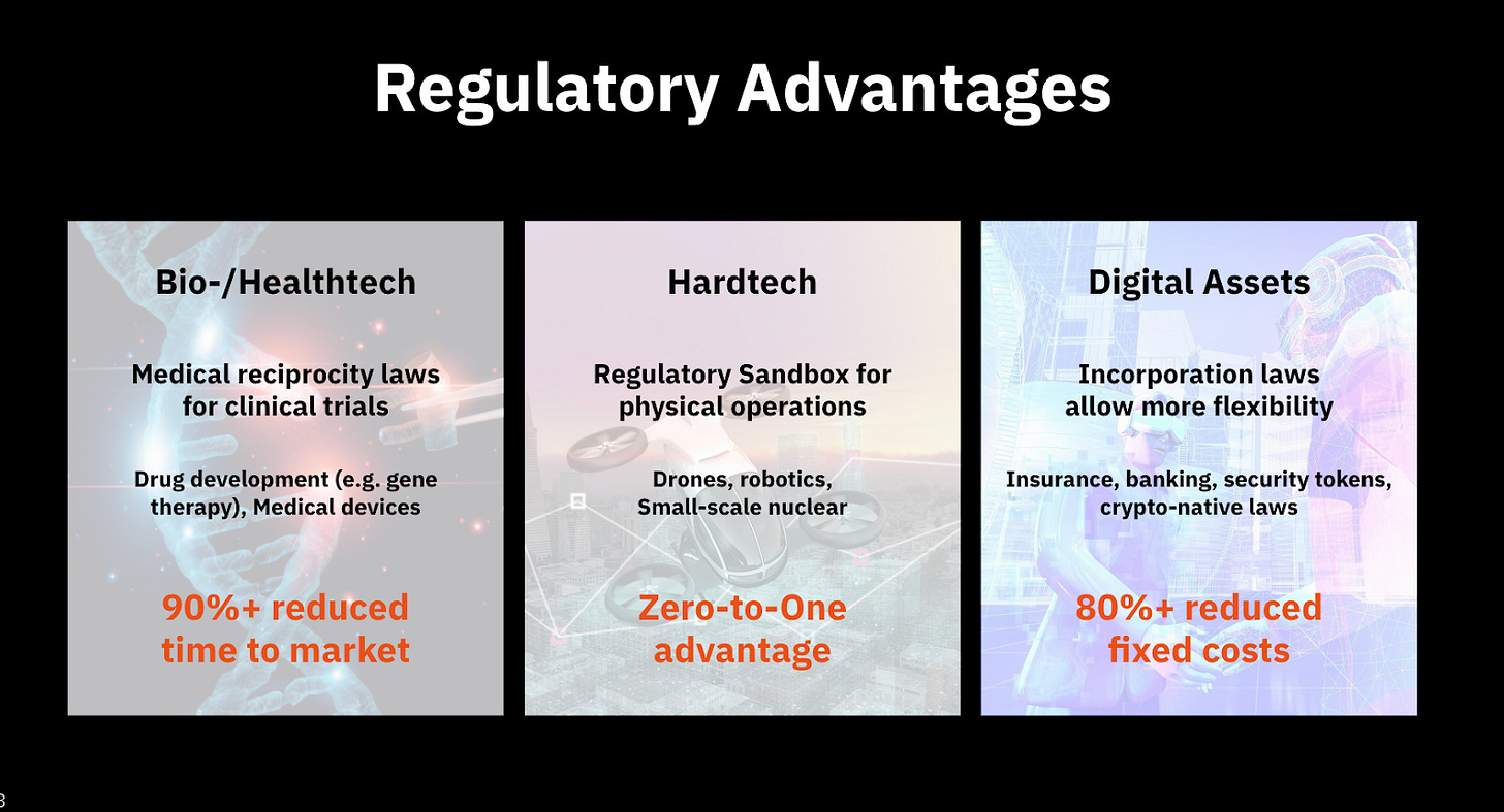 What excites me about the emergence of new jurisdictions with modern regulatory and legal systems is that they could enable a multitude of breakthrough innovations that were previously hindered by outdated laws, red tape, and regulatory overreach.