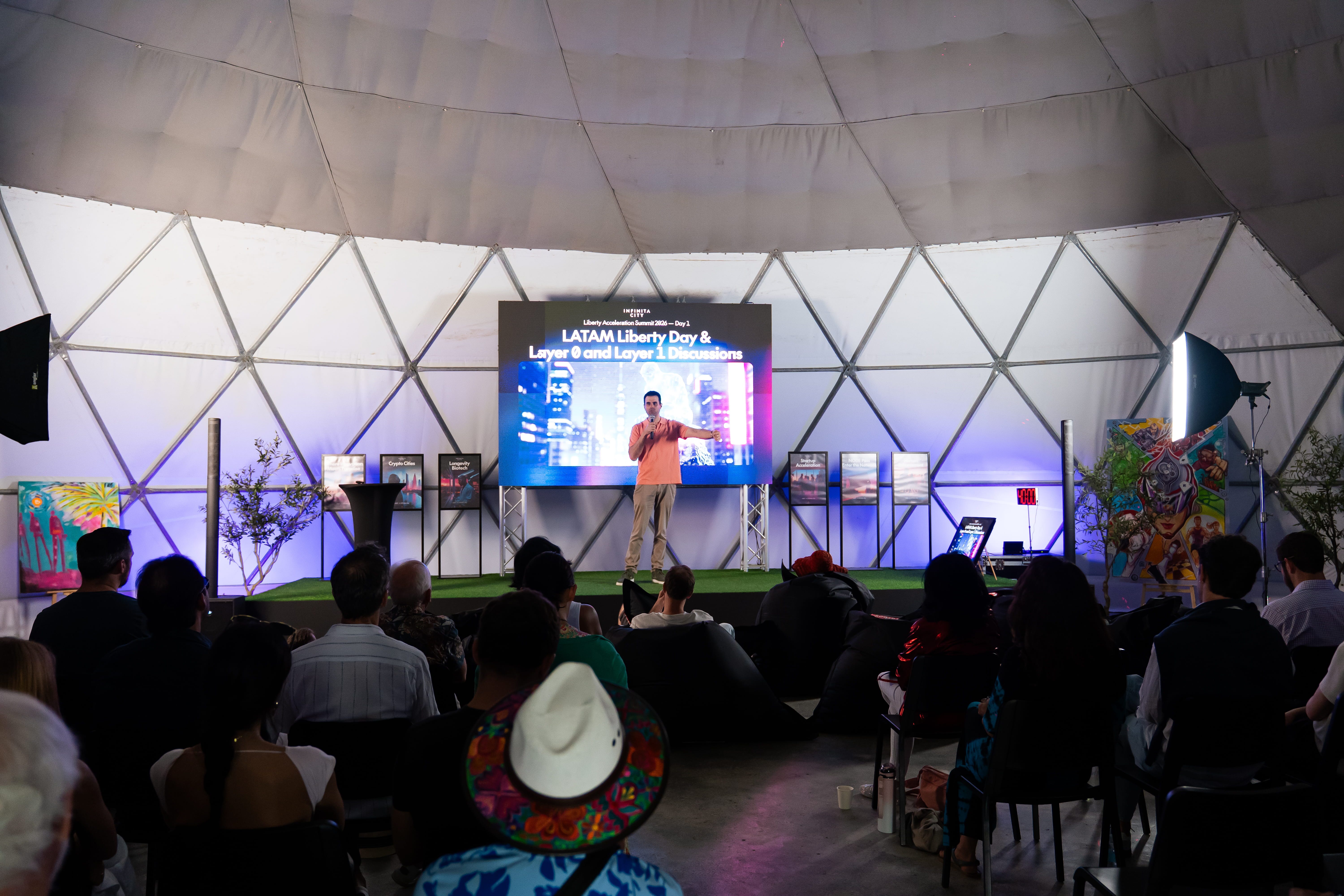 We anchored the Layer-1 / Layer-2 analogy in Próspera, and this is where the origin of this concept comes from, but it is already spreading to other jurisdictions. We also welcomed speakers such as Yesh Baskaran (ZuGrama, India), Payam Safa (LightDAO), Vance (My Latin Life), and Patrick Hiebert (Veritas Villages, Panama) as part of this broader expansion.